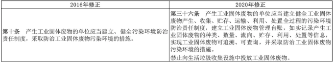 為保證我國(guó)固廢管理制度的銜接性,本次修訂增加了環(huán)保稅、環(huán)境污染強(qiáng)制責(zé)任保險(xiǎn)、固廢排污許可制度等方面內(nèi)容。