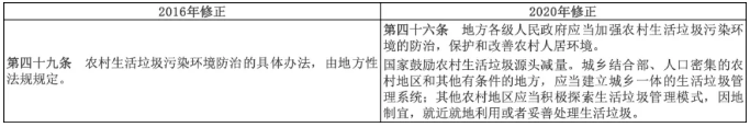 鼓勵(lì)農(nóng)村探索因地制宜的生活垃圾管理機(jī)制。舊版固廢法中農(nóng)村生活垃圾污染環(huán)境防治的具體辦法,由地方性法規(guī)規(guī)定。此次修訂,明確提出地方各級(jí)人民政府應(yīng)當(dāng)加強(qiáng)農(nóng)村生活垃圾污染環(huán)境的防治,保護(hù)和改善農(nóng)村人居環(huán)境。國(guó)家鼓勵(lì)農(nóng)村生活垃圾源頭減量。城鄉(xiāng)結(jié)合部、人口密集的農(nóng)村地區(qū)和其他有條件的地方,應(yīng)當(dāng)建立城鄉(xiāng)一體的生活垃圾管理系統(tǒng);其他農(nóng)村地區(qū)應(yīng)當(dāng)積極探索生活垃圾管理模式,因地制宜,就近就地利用或者妥善處理生活垃圾。