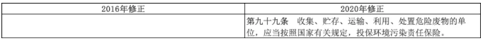 新增了收集、貯存、運(yùn)輸、利用、處置危險(xiǎn)廢物的單位,應(yīng)當(dāng)投保環(huán)境污染責(zé)任保險(xiǎn)的要求。這是我國(guó)環(huán)境保護(hù)法律首次規(guī)定強(qiáng)制性的環(huán)境污染責(zé)任保險(xiǎn)投保責(zé)任。