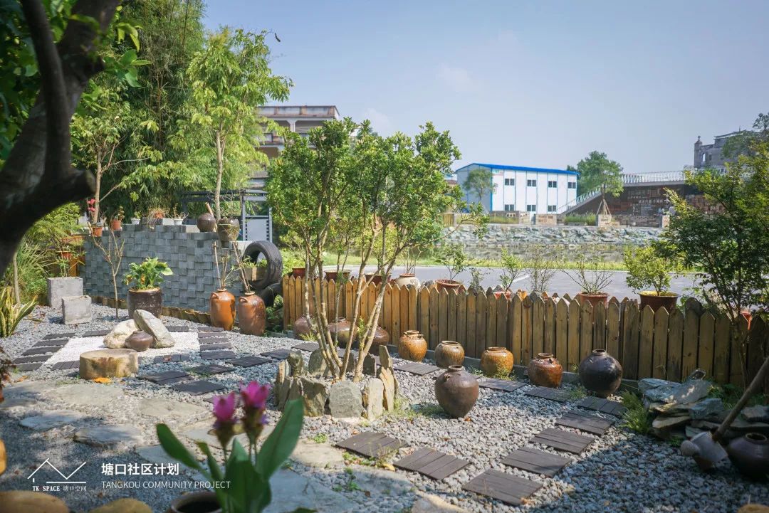 ⊙祖宅廁所對(duì)岸的村民家也用舊物改造起自己的庭院