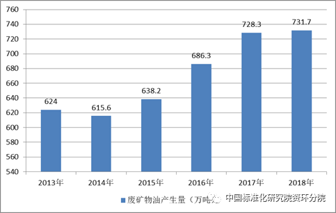 據(jù)統(tǒng)計(jì),我國(guó)每年產(chǎn)生大量的廢礦物油,2013年我國(guó)廢礦物油行業(yè)產(chǎn)生量約624萬(wàn)噸,到2018年產(chǎn)生量達(dá)到了731.7萬(wàn)噸。