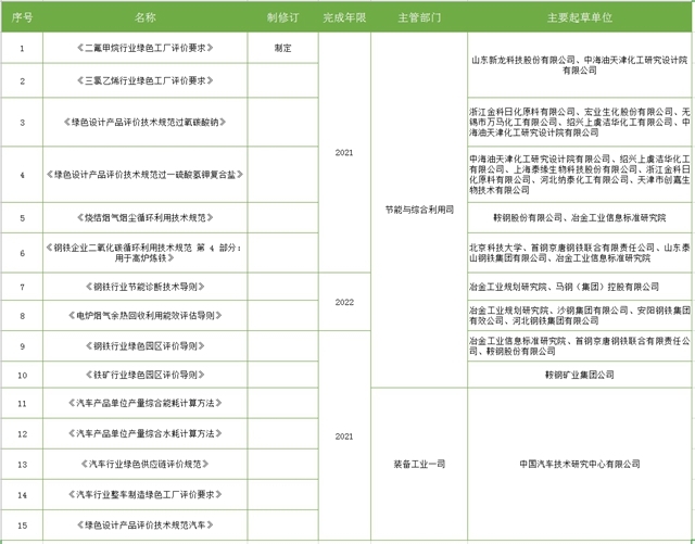 2020年綠色制造標(biāo)準(zhǔn)項目計劃表——