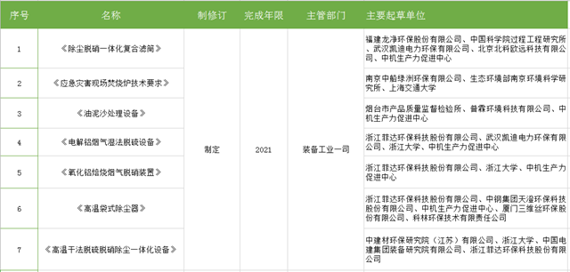 2020年環(huán)境保護裝備標(biāo)準(zhǔn)項目計劃表——