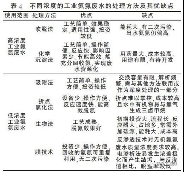3、高低濃度氨氮廢水的處理方法比較