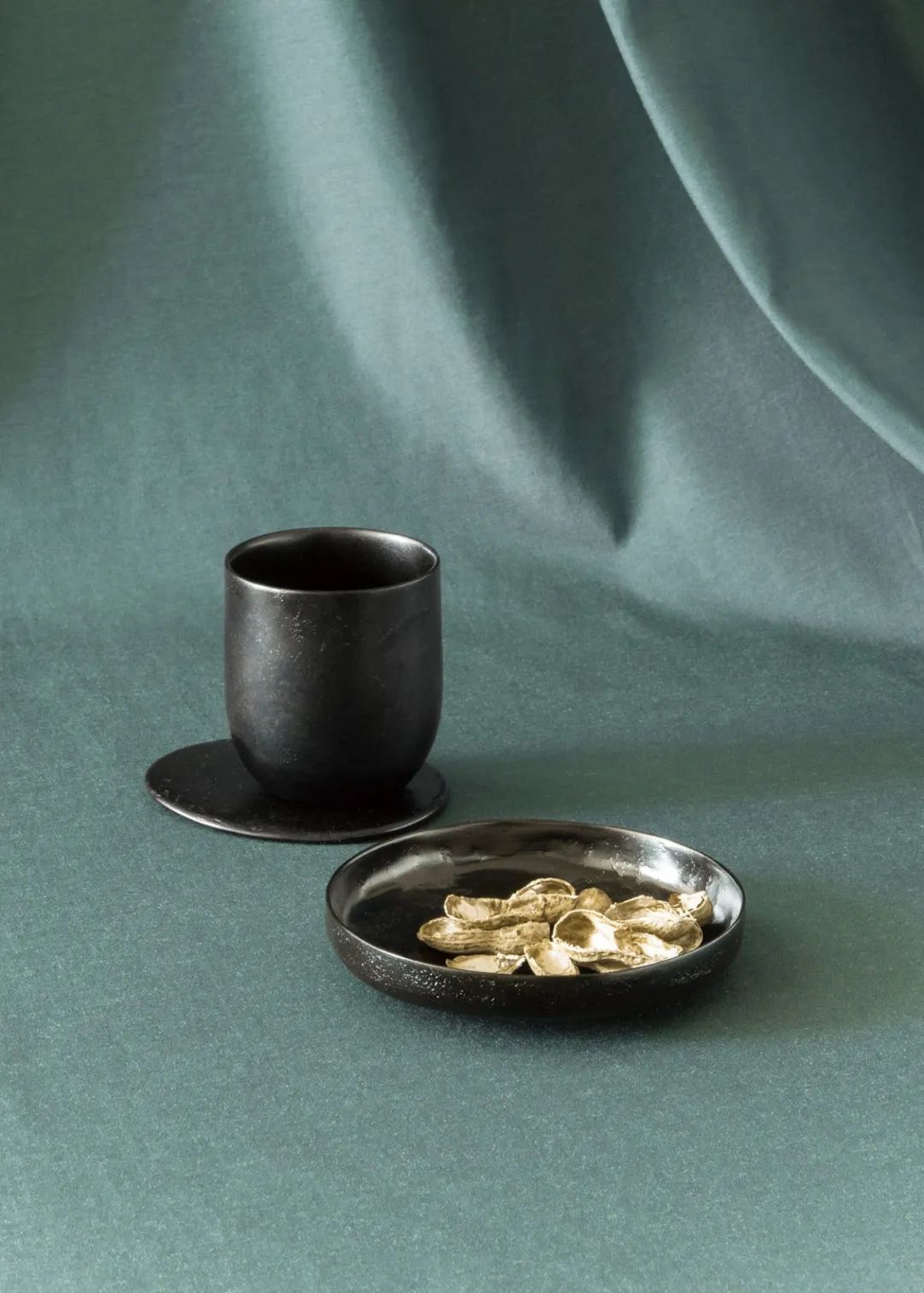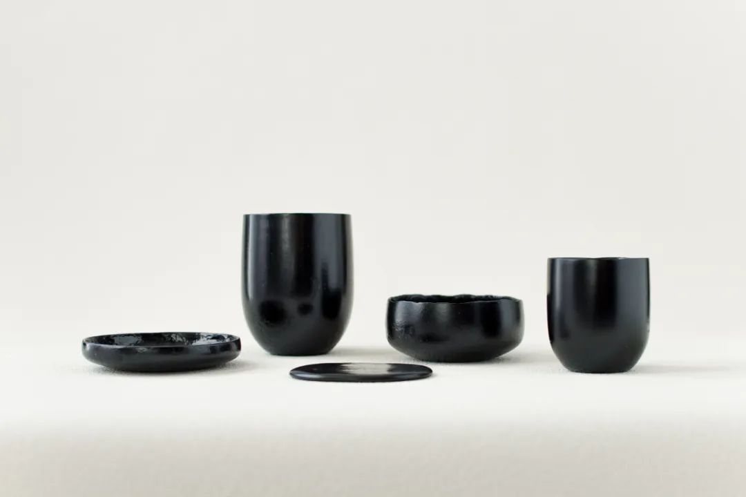 器皿的黑色本體,來(lái)自食物碳化后的本真色彩,這背后也別有一番深意。Araki篤信萬(wàn)物有靈,把食物碳化的過(guò)程,仿佛是為那些被拋棄的生命舉行一場(chǎng)莊嚴(yán)儀式。垃圾焚化后,轉(zhuǎn)世成為美麗的造物,也是這個(gè)系列名字“Anima”(靈魂)的來(lái)源。
