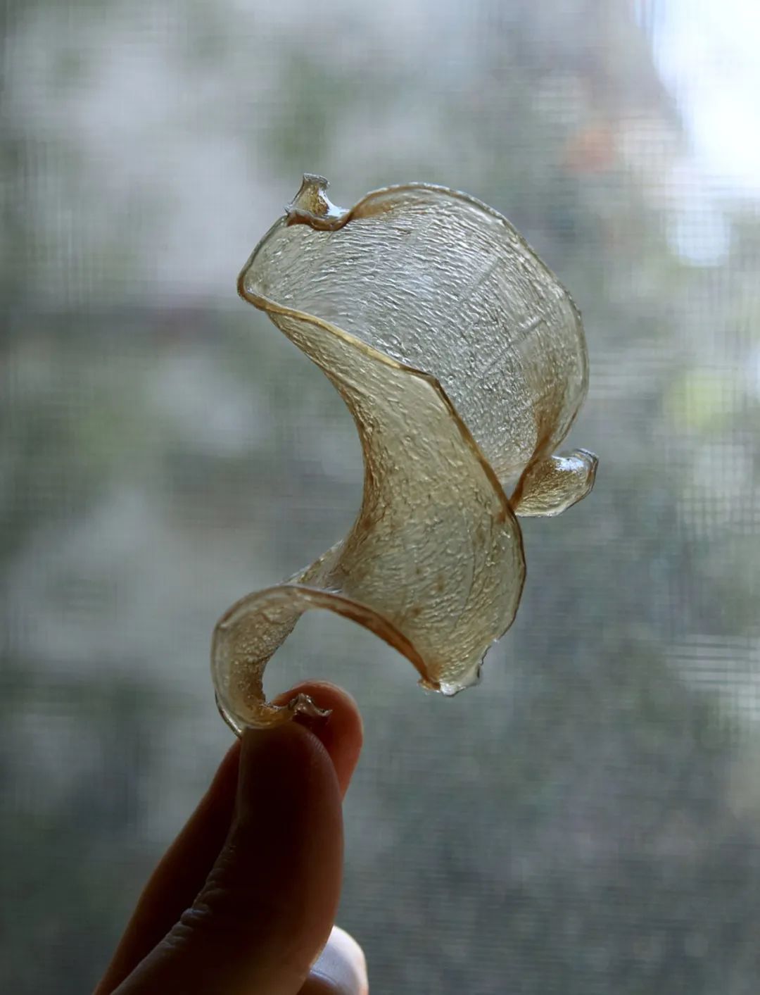 那要用什么替代塑料呢?他們發(fā)現(xiàn)了制作和菓子的主料,瓊脂,就是一個(gè)很適合的替代品。瓊脂的質(zhì)地透明多變,薄厚軟硬可以輕松調(diào)節(jié),還能夠自然降解,是一個(gè)可塑性強(qiáng)、潛力無(wú)限的材質(zhì)。瓊脂做的包裹填充物,比泡泡紙更輕盈也更有彈性,它成功保護(hù)著Araki的快遞從日本安全抵達(dá)意大利,此等優(yōu)越發(fā)明讓Araki獲得了2016年Lexus全球設(shè)計(jì)大獎(jiǎng)。此外,Araki還試著用天然的松樹(shù)脂和植物蠟,代替常見(jiàn)的亞克力材料。他設(shè)計(jì)的植脂花瓶,柔韌且防水,又比塑料更多了一份氤氳。植物材料天生有記憶屬性,在不同的溫度控制下,很容易用手工塑形,讓這些花器有了流水線產(chǎn)品缺少的溫度。而作為大米消費(fèi)大國(guó),日本每年都有成噸的大米囤積發(fā)霉變質(zhì)。Araki借鑒日本歷史上,用大米制成膠水穩(wěn)固房屋的案例,他用大米膠水粘合木屑和黃麻,制成強(qiáng)韌的圓柱體。