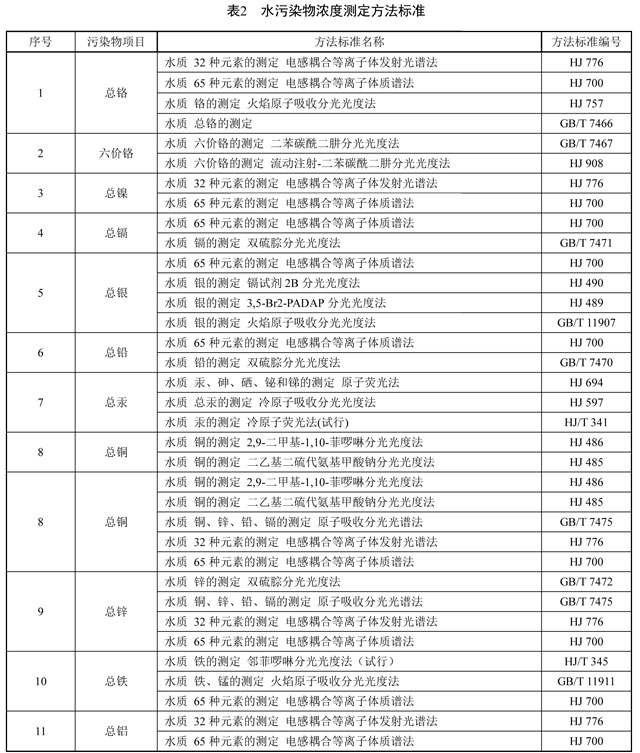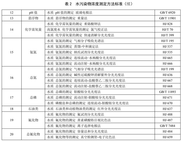 6.2.3 水污染物的分析測定采用表 2 所列的方法標(biāo)準(zhǔn)。