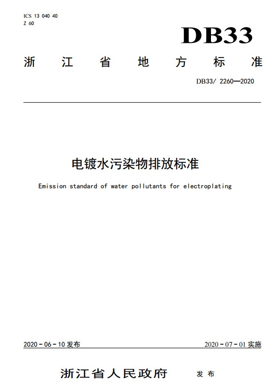 2020年6月10日,浙江省人民政府批準(zhǔn)發(fā)布了DB33/ 2260-2020《電鍍水污染物排放標(biāo)準(zhǔn)》省級地方標(biāo)準(zhǔn)。標(biāo)準(zhǔn)文本見附件。