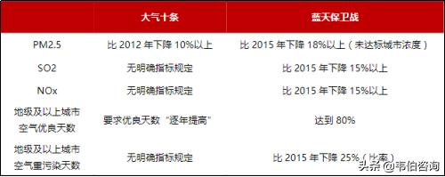 圖表3:“藍(lán)天保衛(wèi)戰(zhàn)”與“大氣十條”主要指標(biāo)對比