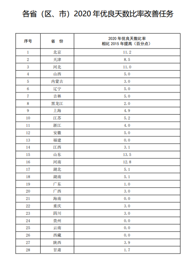 3.各省(區(qū)、市)2020年優(yōu)良天數(shù)比率改善任務(wù)