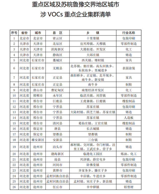 4.重點(diǎn)區(qū)域及蘇皖魯豫交界地區(qū)城市涉VOCs重點(diǎn)企業(yè)集群清單