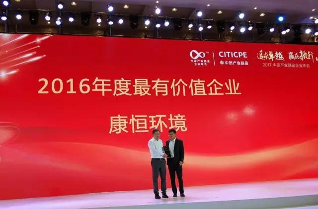 本屆年會(huì)以“追求卓越、贏在執(zhí)行” 為主題,中信產(chǎn)業(yè)基金董事長(zhǎng)劉樂飛、總裁田宇分別發(fā)表主旨演講??岛悱h(huán)境董事長(zhǎng)兼CEO龍吉生博士發(fā)表獲獎(jiǎng)感言時(shí)表示 : "我很榮幸代表康恒環(huán)境領(lǐng)取‘2016年度最有價(jià)值企業(yè)’獎(jiǎng),這個(gè)榮譽(yù),我將獻(xiàn)給康恒環(huán)境的管理團(tuán)隊(duì)和所有康恒環(huán)境的員工,感謝所有支持康恒環(huán)境的中信產(chǎn)業(yè)基金的領(lǐng)導(dǎo),未來(lái),康恒環(huán)境將秉承‘誠(chéng)信、勤儉,敬業(yè)、責(zé)任,團(tuán)隊(duì)、創(chuàng)新’的企業(yè)價(jià)值觀,牢記創(chuàng)造‘更潔凈更友好的生活環(huán)境’的企業(yè)使命,早日將康恒環(huán)境打造為 '跨世紀(jì)的全球城市固廢綜合治理行業(yè)領(lǐng)跑者' ”。