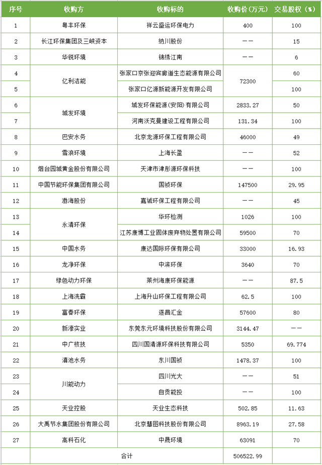 本文對上半年主要的環(huán)保股權(quán)更迭事件進行簡要梳理(僅供參考):