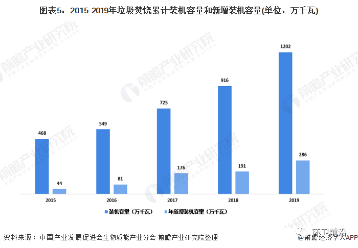 截至2019年底,全國30個(gè)省(區(qū)、市)垃圾焚燒發(fā)電累計(jì)裝機(jī)容量為1202萬千瓦,較2018年增長31%,2019年新增發(fā)電裝機(jī)容量286萬千瓦。