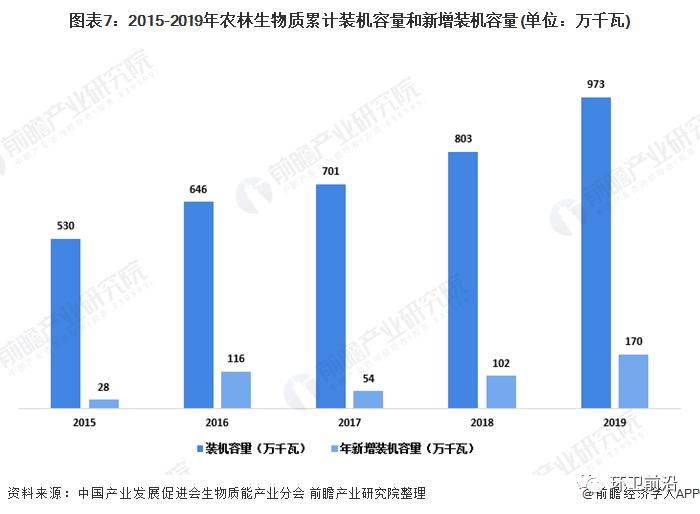 截至2019年底,全國25個(gè)省(區(qū)、市)農(nóng)林生物質(zhì)發(fā)電累計(jì)裝機(jī)容量973萬千瓦,較2018年增長21%,2019年新增裝機(jī)容量170萬千瓦。