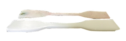 在海水里浸泡3個月的海水可降解塑料樣品(上)和良好保存的樣品(下)對比