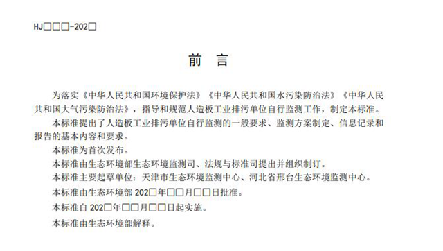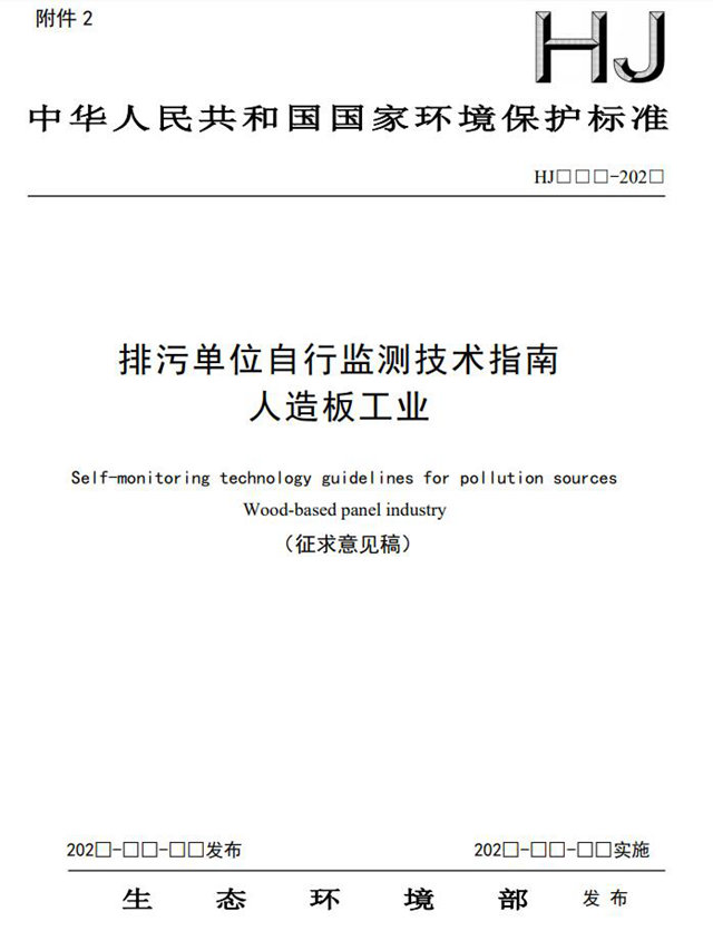 原標(biāo)題:關(guān)于征求國家環(huán)境保護標(biāo)準(zhǔn)《排污單位自行監(jiān)測技術(shù)指南 人造板工業(yè)(征求意見稿)》意見的函