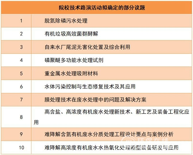 意識(shí)到這一點(diǎn),為使業(yè)內(nèi)人士明確當(dāng)下廢水零排放相關(guān)技術(shù)的研究方向,2020院校技術(shù)路演活動(dòng)擬定了10大議題,將圍繞廢水零排放進(jìn)行了廣泛的交流和探討,為水處理高質(zhì)量轉(zhuǎn)型升級(jí)創(chuàng)造有利條件。具體如下:
