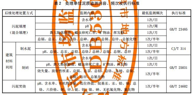 b) 擬采取填埋、建筑材料利用及焚燒的泥質(zhì)監(jiān)測(cè)應(yīng)按表 2 執(zhí)行。