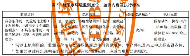 污泥填埋處置的,應(yīng)按GB 18599、GB 16889開(kāi)展環(huán)境影響跟蹤監(jiān)測(cè);污泥土地利用處置的,處置過(guò)程結(jié)束后應(yīng)按表5開(kāi)展環(huán)境影響跟蹤監(jiān)測(cè),監(jiān)測(cè)周期不應(yīng)低于10年;采用其他處置方式時(shí),則執(zhí)行與其對(duì)應(yīng)的相關(guān)標(biāo)準(zhǔn)。