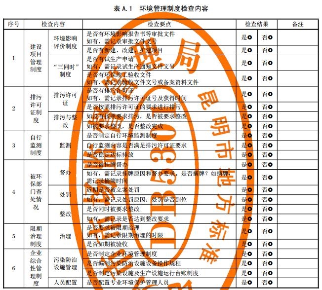 環(huán)境管理制度檢查內(nèi)容見表A.1。