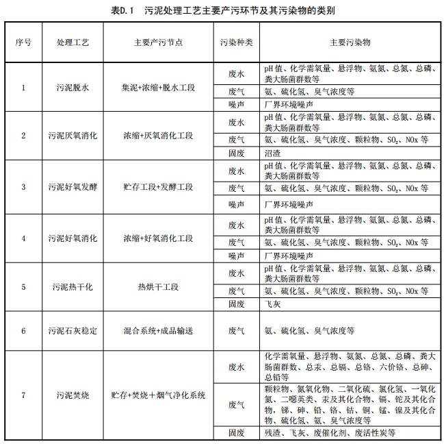 5.4.2.1 污泥處理處置工藝主要產(chǎn)污環(huán)節(jié)及其污染物的類別,參見附錄 D。