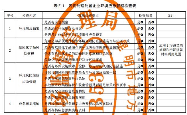 污泥處理處置企業(yè)環(huán)境應(yīng)急管理檢查表見表F.1。