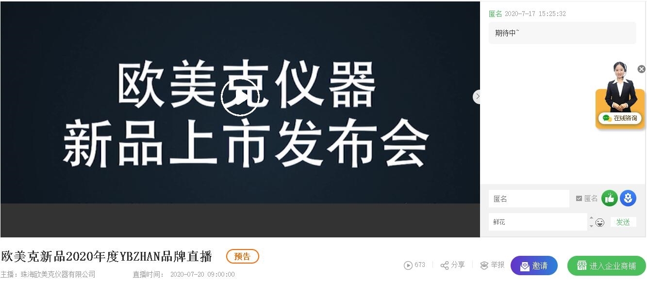 本次直播歐美克將舉辦新品線上發(fā)布會,鎖定企業(yè)直播間我們一同見證發(fā)布會的精彩!