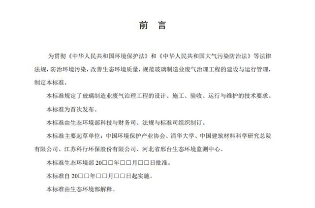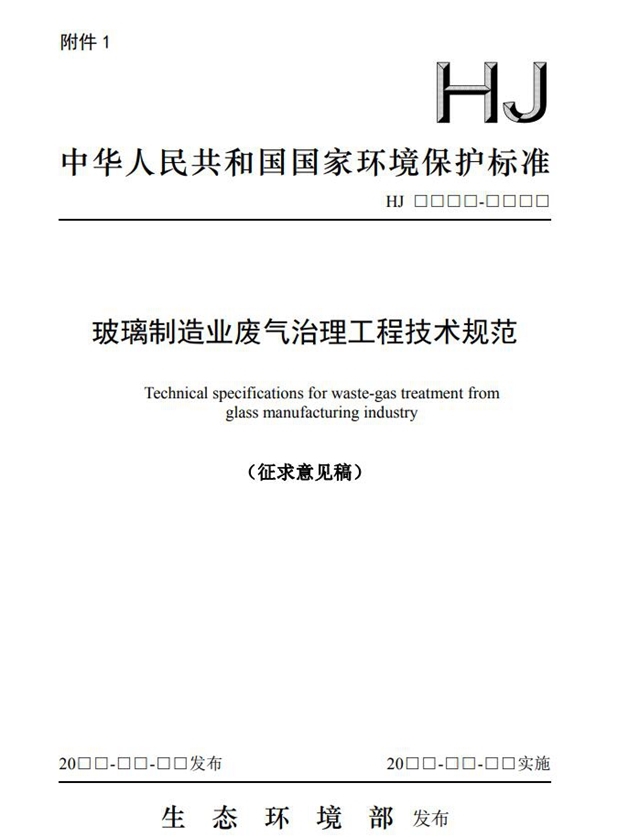 為貫徹《中華人民共和國環(huán)境保護法》,保護環(huán)境,防治環(huán)境污染,我部組織開展了國家環(huán)境保護標準《玻璃制造業(yè)廢氣治理工程技術(shù)規(guī)范》的編制工作。