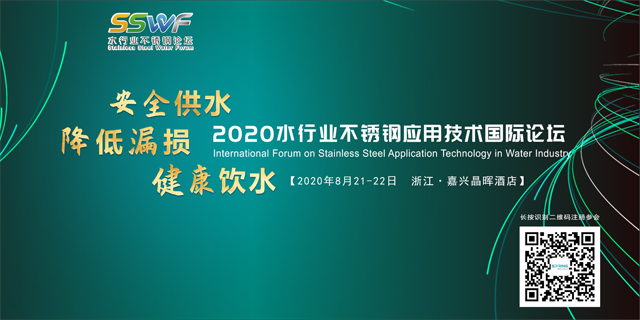以“安全供水,降低漏損,健康飲水”為主題“2020水行業(yè)不銹鋼應(yīng)用技術(shù)國際論壇”將于2020年8月21-22日在浙江嘉興舉辦,大會由國際鎳協(xié)會、東華大學(xué)環(huán)境科學(xué)與工程學(xué)院、浙江省城市水業(yè)協(xié)會設(shè)備材料工作委員會聯(lián)合承辦,嘉興市清源智慧水務(wù)科技創(chuàng)新研究院和盈聞會展(上海)有限公司承辦,并獲得中國建筑裝飾裝修材料協(xié)會金屬裝飾材料分會、華東地區(qū)給水排水技術(shù)信息網(wǎng)、江蘇省土木建筑學(xué)會給水排水專業(yè)委員會及山東土木建筑學(xué)會建筑給排水專業(yè)委員會等行業(yè)組織的大力支持!