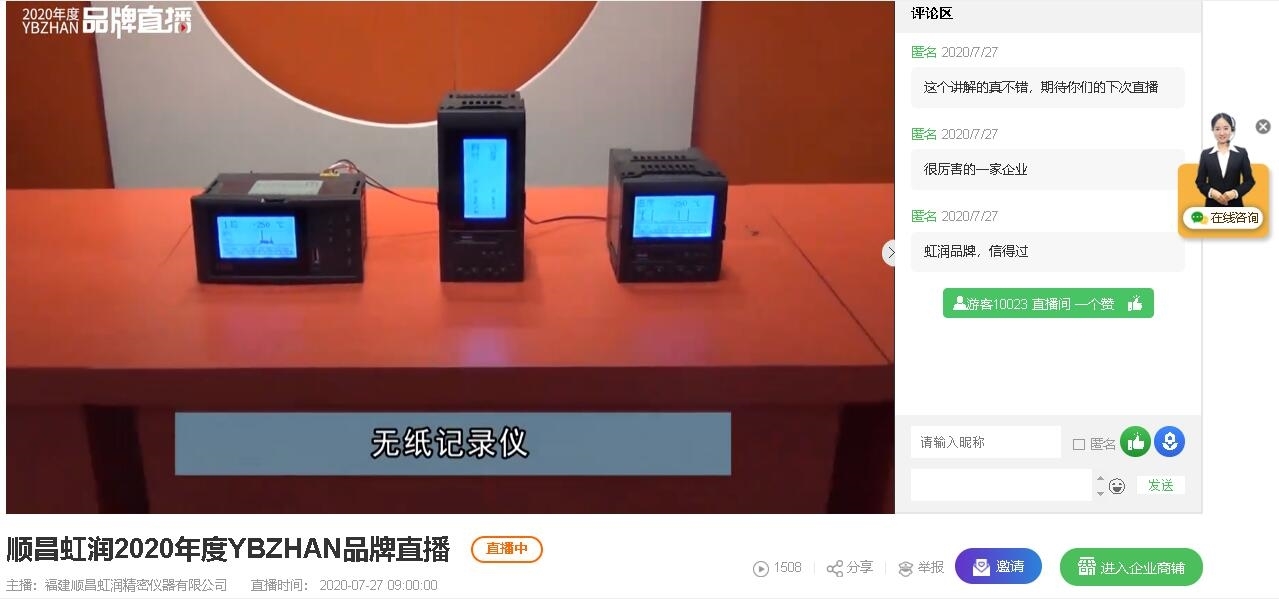 由儀表網(wǎng)主辦的“2020年度YBZHAN品牌直播”公益活動(←點擊進入直播間)正在火熱進行中。今天(7月27日),上午9:00數(shù)顯儀表品牌專場(←點擊進入)火熱開播。