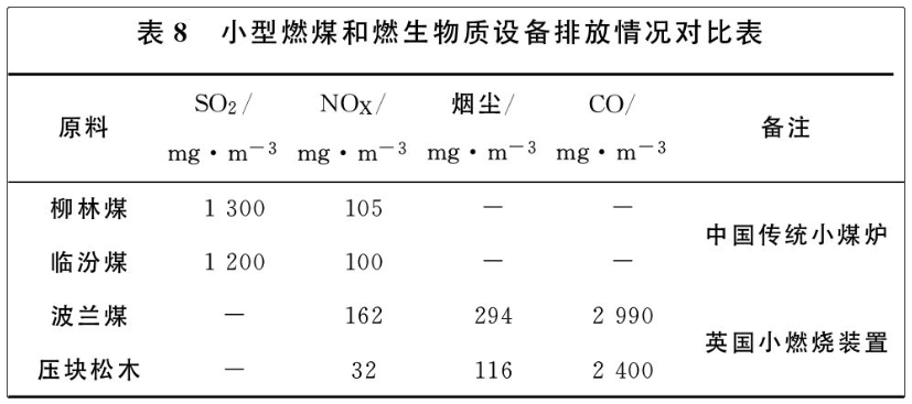 國(guó)內(nèi)外現(xiàn)有生物質(zhì)燃燒設(shè)備排放情況及與小型煤爐對(duì)比