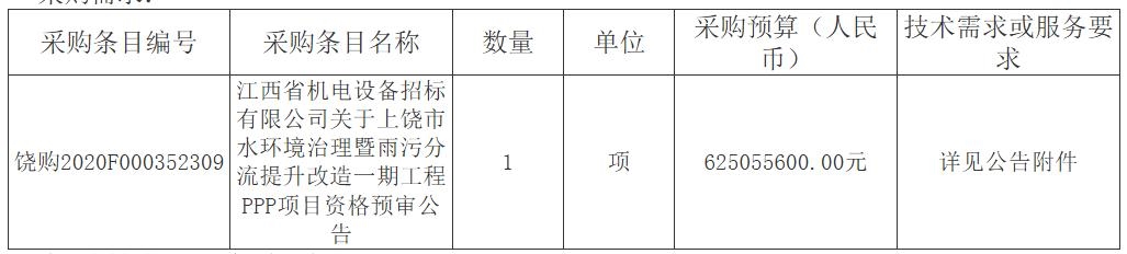 原標(biāo)題:6.25億江西省上饒市水環(huán)境治理暨雨污分流提升改造一期工程PPP項(xiàng)目公開招標(biāo)