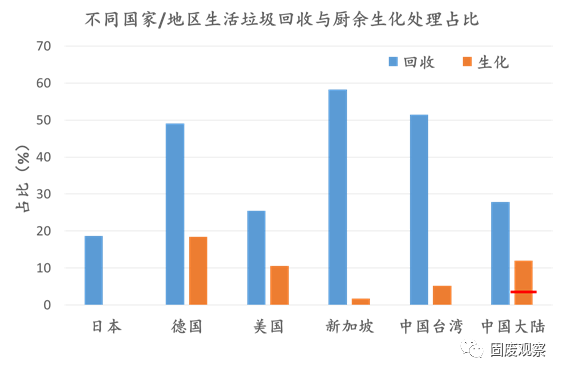 從上述圖片及各國家數據的對比可知,大陸的生活垃圾回收仍有極大的提升空間。