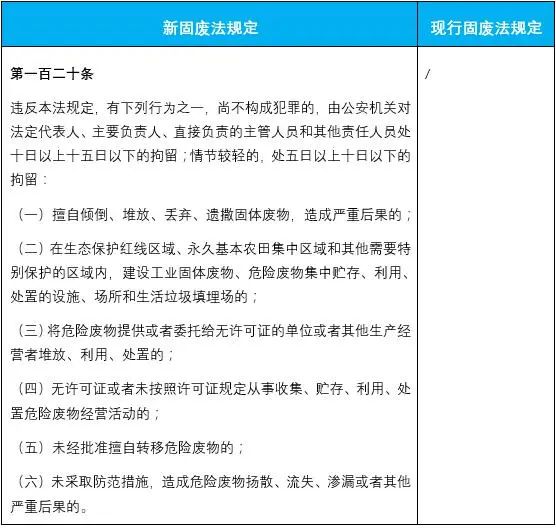新固廢法普遍提高了對違法行為的罰款金額幅度,具體見下表:
