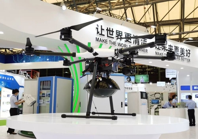 盈峰環(huán)境的展位上,5G無人駕駛環(huán)衛(wèi)機器人、自動巡航的監(jiān)測無人機等多款產(chǎn)品一經(jīng)展出,就吸引了各地客商前來花式體驗,為環(huán)博會帶來了助燃劑!