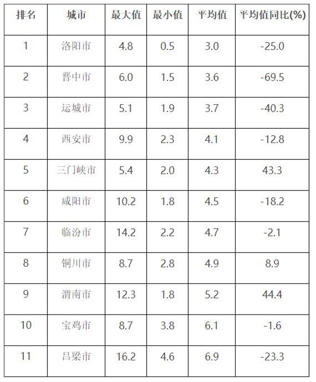 2020年7月汾渭平原11城市降塵監(jiān)測結(jié)果