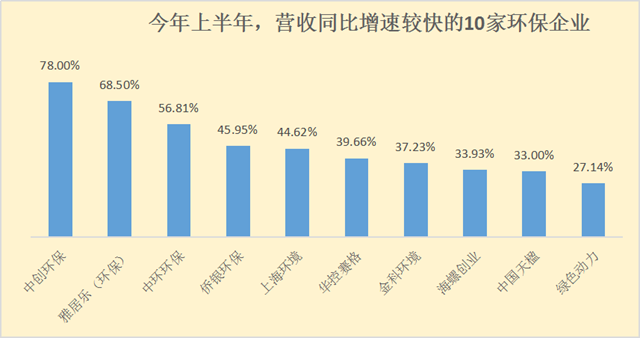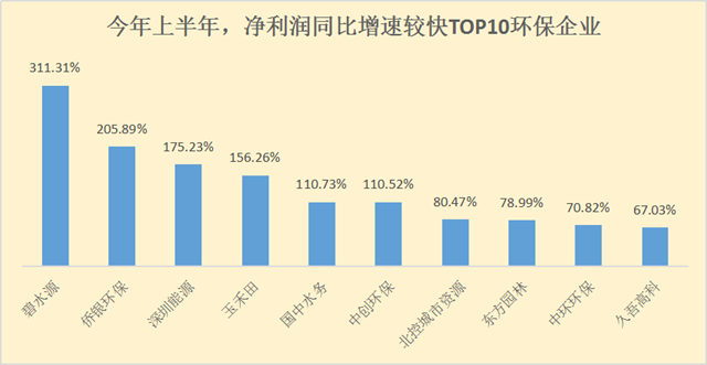 這一點(diǎn),在今年上半年?duì)I收、凈利潤(rùn)同比增速較快的環(huán)保企業(yè)中均有體現(xiàn)。
