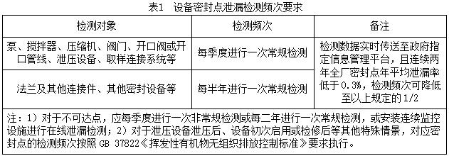 應(yīng)按表1頻次要求對設(shè)備密封點(diǎn)進(jìn)行檢測。