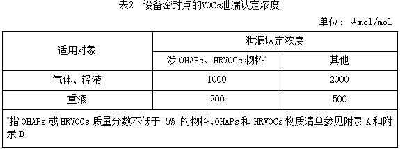 b)密封點(diǎn)的VOCs泄漏檢測值超過表2規(guī)定的泄漏認(rèn)定濃度值。