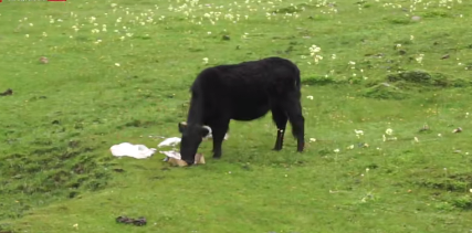 天蒼蒼,野茫茫,草地上一頭牦牛,低頭啃食著的不是草料。