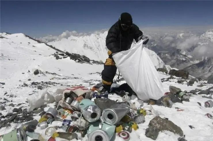 氣候地形惡劣,常住人口稀少,珠峰的垃圾清潔難上加難。再加上極度低溫缺氧,生態(tài)脆弱,有機物垃圾也無法靠微生物自然降解。