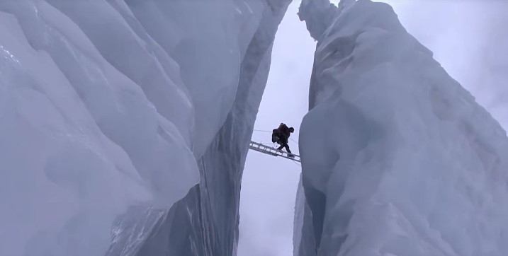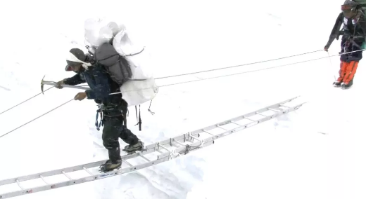 《珠峰清道夫》記錄著世代生活在珠峰腳下的夏爾巴人。他們視珠峰為圣潔的女神,不該存在任何垃圾、遺體被留在珠峰上。納姆巴爾一行人為了撿拾垃圾,必須穿越隨時可能發(fā)生雪崩的冰川瀑布,用獨木梯通過兇險的峽谷。