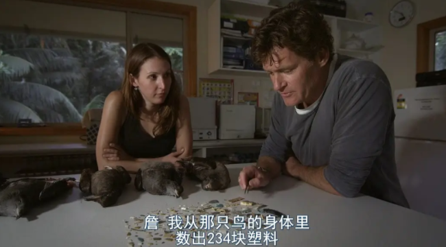 最讓人震撼的一幕,是科學家們用剪刀把死去的海鳥胃部剪開,映入眼簾的是密密麻麻的塑料。