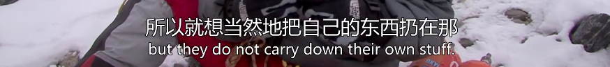《珠峰清道夫》中一位登山隊員說:登山旺季,會有好幾十只登山隊伍到達這里,他們寄希望于清潔人員,干脆就把垃圾扔在山上。