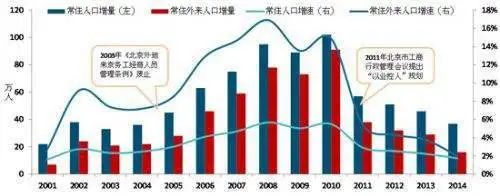 從2010年開始,為應(yīng)對(duì)外來人口過快增長,北京出臺(tái)一系列人口調(diào)控組合拳,從此之后,北京外來人口增速一直呈現(xiàn)下降態(tài)勢(shì)。后來,隨著北京城市規(guī)劃中對(duì)勞動(dòng)密集型產(chǎn)業(yè)的壓縮和外遷,廢品回收產(chǎn)業(yè)被列入被禁止建設(shè)的行業(yè),北京市再生資源回收遇到了前所未有的寒冬,北京五環(huán)到六環(huán)之間的廢品分類和交易市場(chǎng)在數(shù)月期間消失。