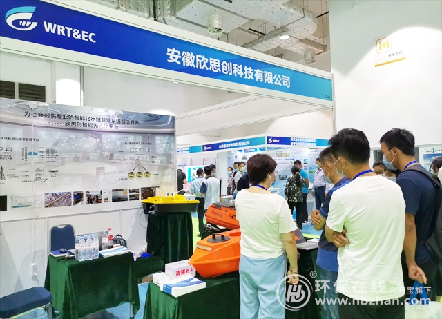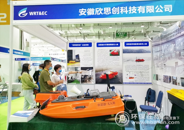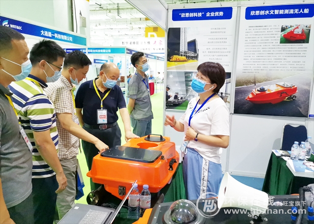 圖為展會(huì)期間,欣思創(chuàng)相關(guān)參展工作人員為專業(yè)人士介紹水文智能測流無人船