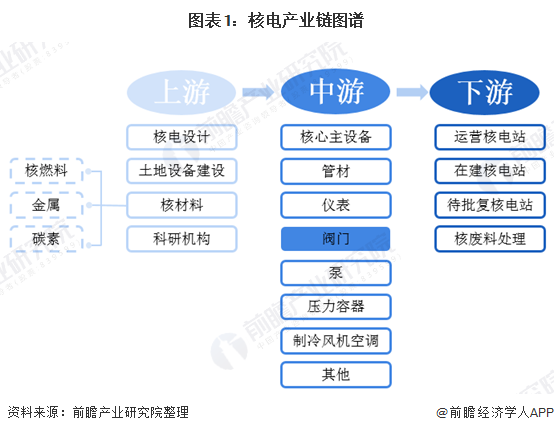 核電閥門是指在核電站中核島N1、常規(guī)島CI和電站輔助設施BOP系統(tǒng)中使用的閥門。從安全級別上分為核安全Ⅰ級、Ⅱ級、Ⅲ級、非核級。其中核安全Ⅰ級要求最高。核電閥門在核電站中是使用數(shù)量較多的介質(zhì)輸送控制設備,是核電站安全運行中的必不可少的重要組成部分,由此核電閥門市場與核電站成強正相關關系。