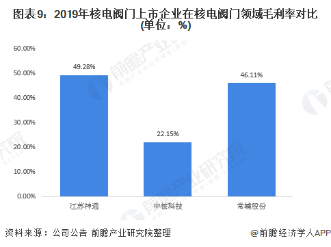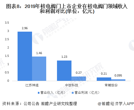 從上市的核電閥門企業(yè)分析,2019年江蘇神通在核電閥門產(chǎn)品中實現(xiàn)營業(yè)收入2.96億元,營業(yè)利潤1.46億元,相較于中核科技和常輔股份而言擁有較大的銷售競爭力。