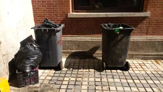 濕垃圾桶內(nèi)充斥著各類垃圾